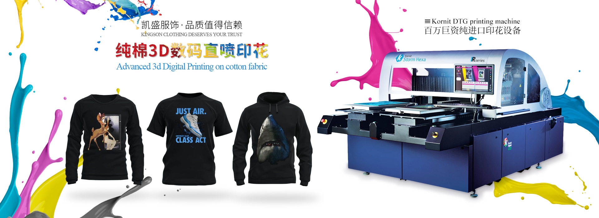 凯盛服饰是一家深耕行业十六载的服装工贸领航者,凭借其多元化的高端数码印花设备,致力于打造从设计到生产的全方位服务链条。